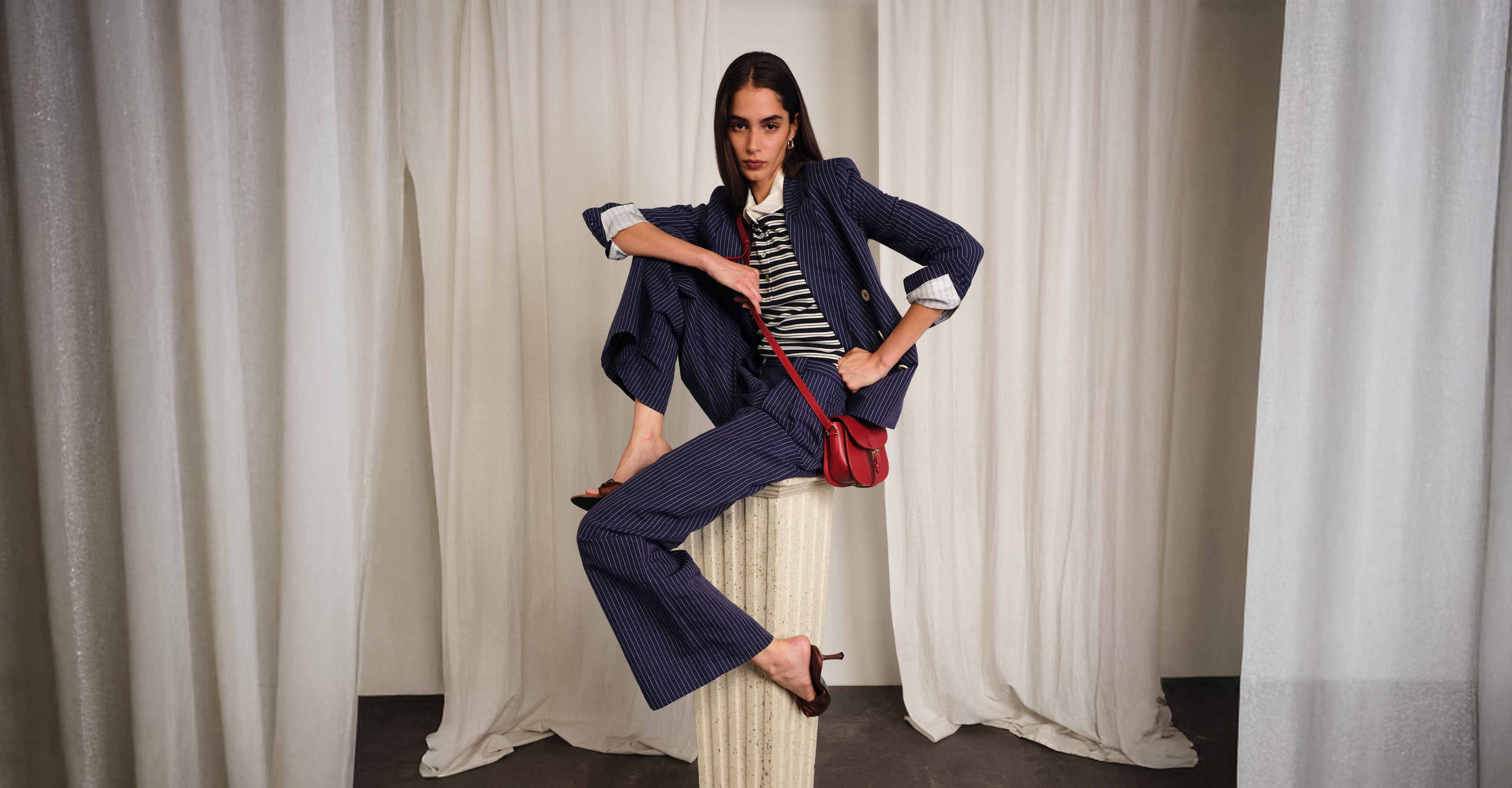 Caban Séraphine lainage crème à chevrons