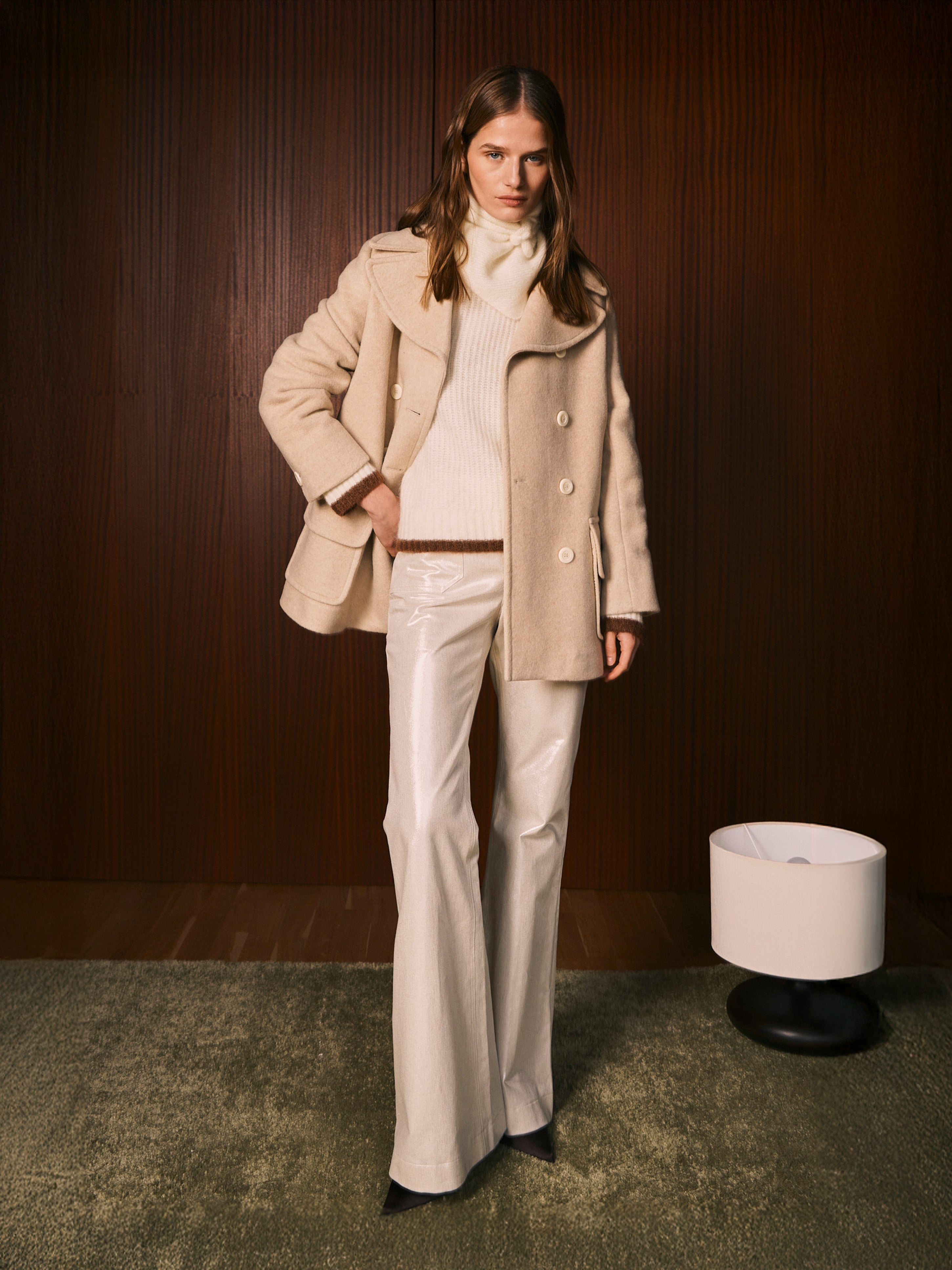 Séraphine cream herringbone wool pea coat
